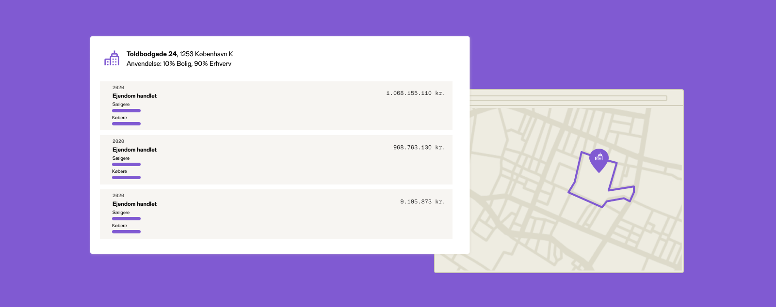 De tidligere transaktioner på en ejendom siger meget om, hvad en ejendom er værd i dag. Og det er værdifuldt at have overblik over, hvor ofte en ejendom har skiftet hænder, og hvem der er køber og sælger, når du skal værdiansætte, købe eller måske udvikle en ejendom.